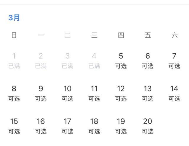 3月1日当天预约已满